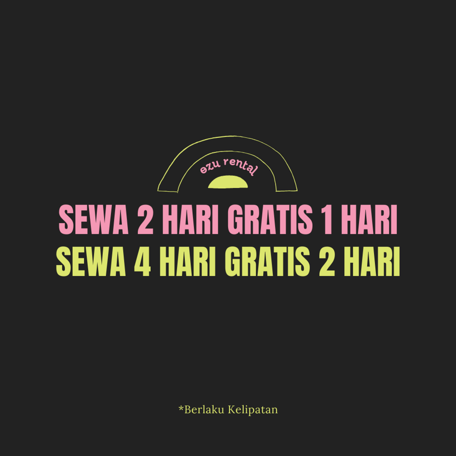 Gratis sewa 1 hari, setiap sewa 2 hari, berlaku kelipatan!