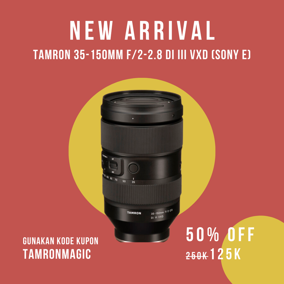 Tampil beda dengan Tamron 35-150mm f/2-2.8 Di III VXD untuk Sony E-mount! π₯ Lensa ini menawarkan fleksibilitas luar biasa dengan rentang focal length 35-150mm, memungkinkanmu berpindah dari wide-angle untuk lanskap hingga telephoto untuk potret close-up tanpa perlu mengganti lensa. Dilengkapi aperture besar f/2-2.8, lensa ini memberikan bokeh yang indah dan performa low-light yang mengagumkan di seluruh rentang zoom. Cocok untuk segala kebutuhan, mulai dari wedding, travel, potret, hingga aksi, kualitas optik dan fokus super cepatnya akan membuat hasil fotomu semakin memukau. Satu lensa untuk semua momen, praktis dan efisien! π