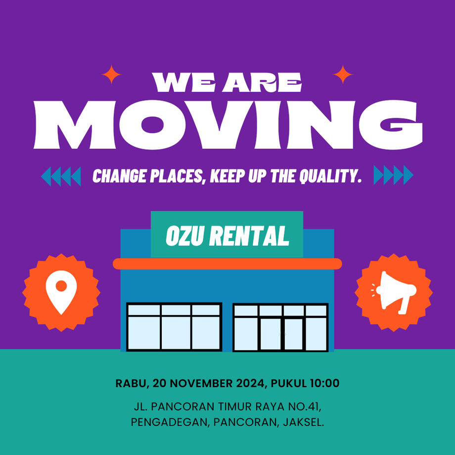 Diinformasikan kepada Pelanggan setia OZU Rental, bahwa pada hari Kamis, tanggal 20 November 2024, pukul 10:00 WIB, Store OZU akan pindah ke lokasi baru.